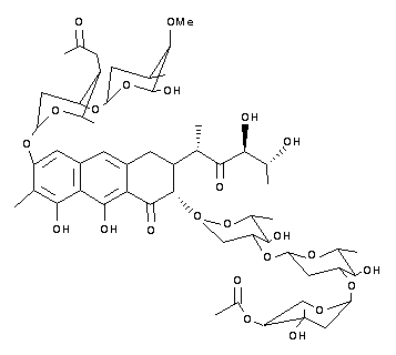 | Effect on DNA | Dimer binding results in wide, shallow minor groove with major groove compression [Gao, 1989]. One report states that DMS methylation pattern is altered [Fox, 1985], but a conflicting report also exists [Dabrowiak, 1989] |