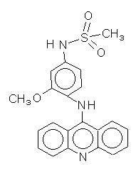 | Binding Mode | Intercalation of acridine ring, possibly threading [Bailly, 1992 #750]. Methanesulfon-m-ansidine ring in minor groove. |